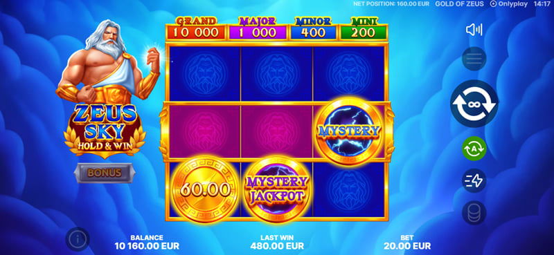 Onlyplay has launched Zeus Sky: Hold & Win, a 3×3 slot based on Greek mythology and set above Mount Olympus.