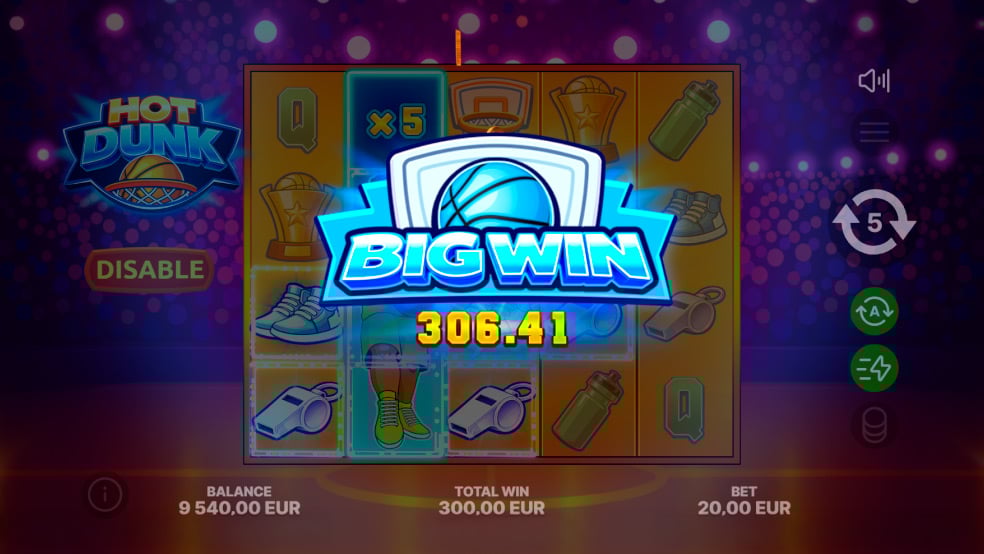 Hot Dunk also includes a Bonus Buy feature, allowing players to access key gameplay elements instantly. This includes activating guaranteed WILDs with multipliers in the base game or unlocking Free Spins without waiting for scatter combinations. The feature is designed to give players more control over how they engage with the game.